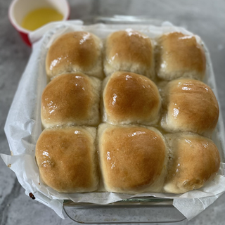 When golden brown, remove the buns from the oven and brush them with melted butter. Place on a cool rack to cool.